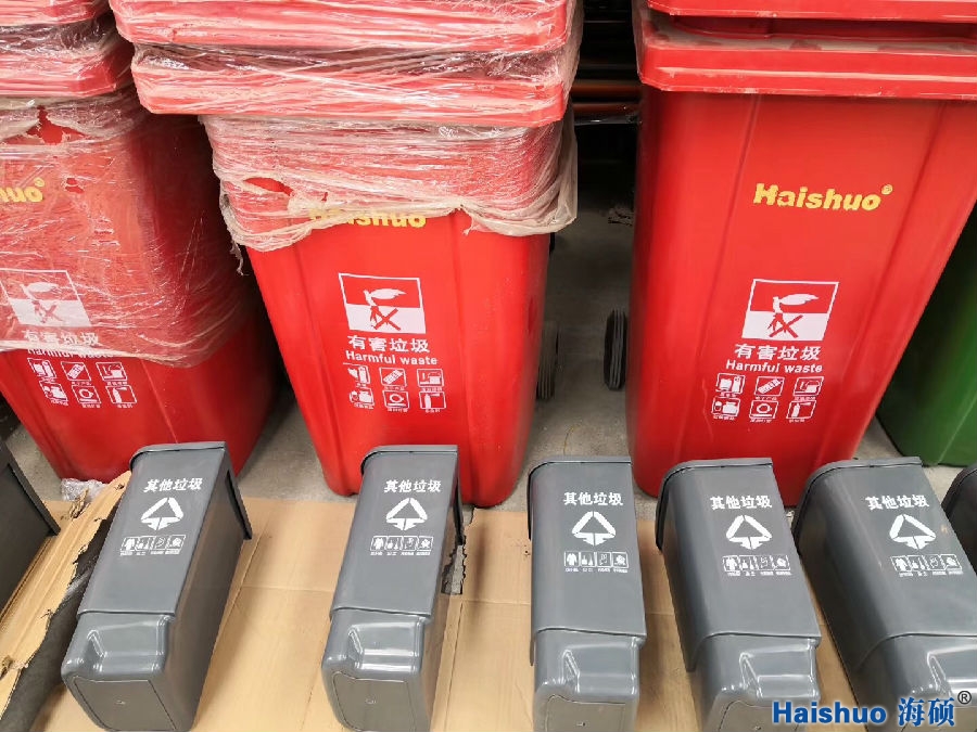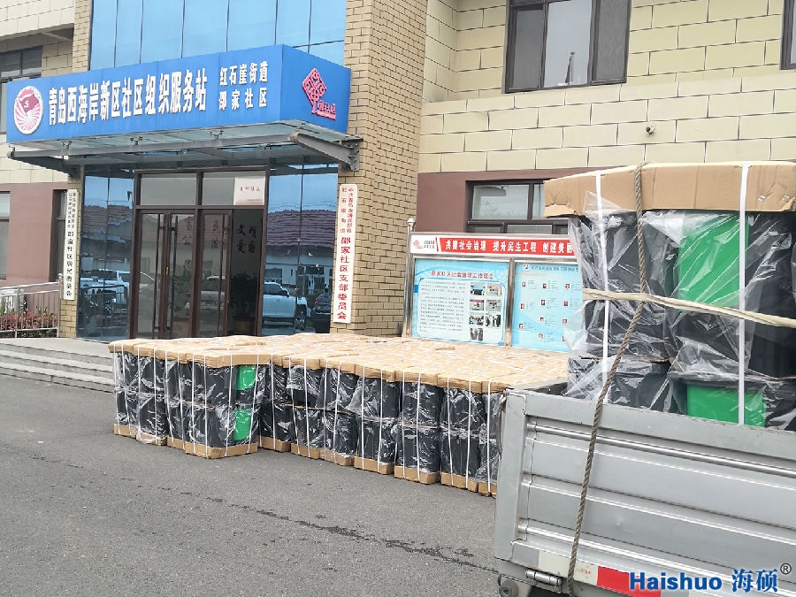 “海碩環保”助力黃島區紅石崖街道垃圾分類,買垃圾桶找海碩,海碩戶外垃圾桶防曬抗老化,耐凍防裂,耐腐蝕 抗沖擊 可直接與環衛車配套使用, 量大免費印刷LOGO